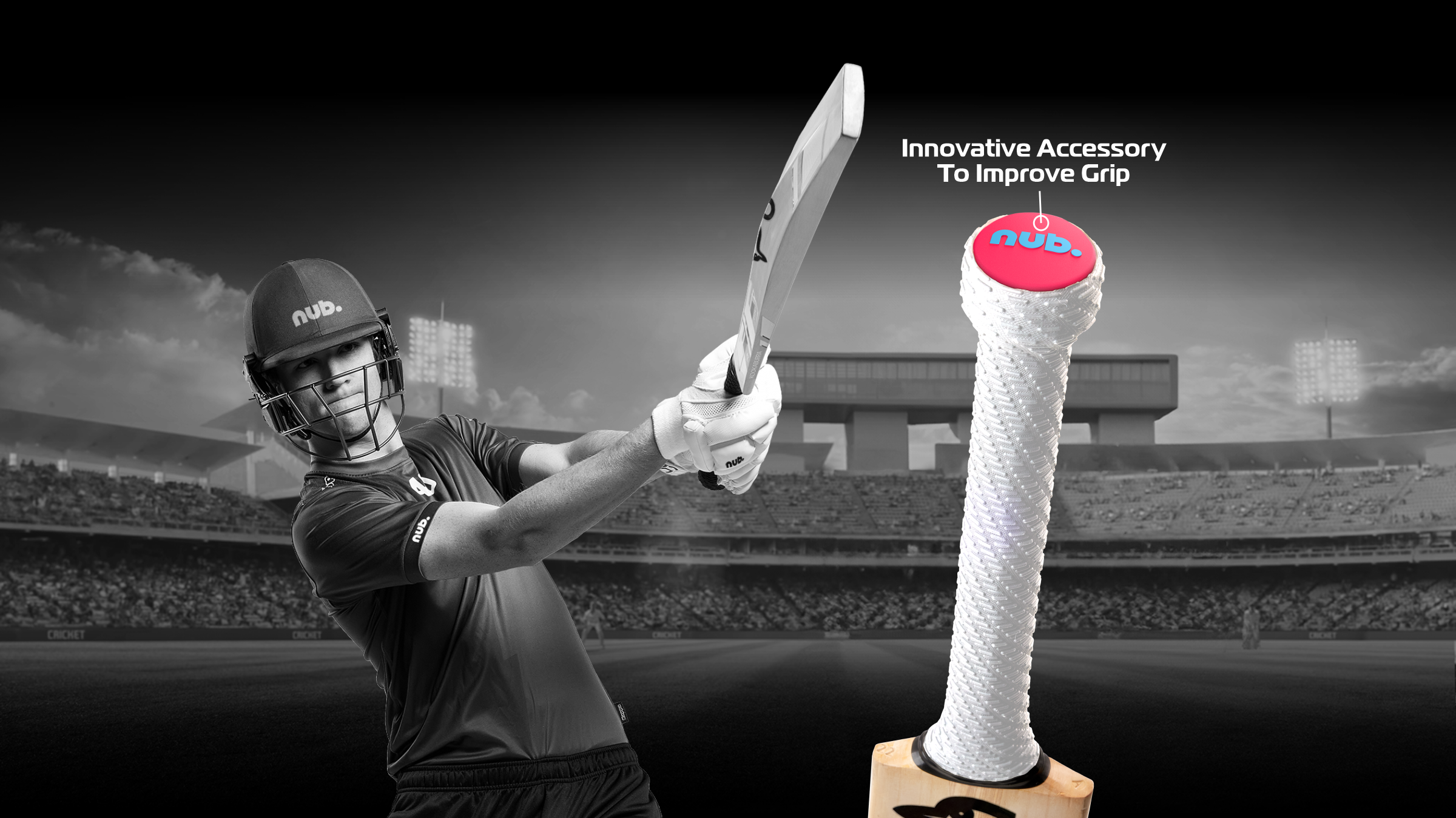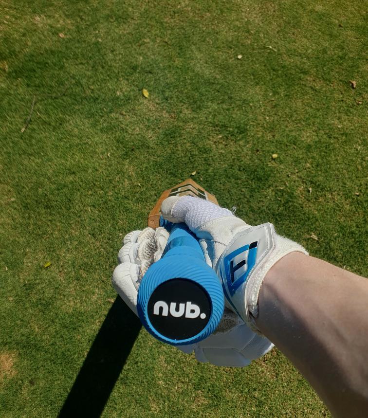nub fits to the end of a cricket bat handle, under the grip, to improve top hand control and stability, resulting in greater confidence during shot play.