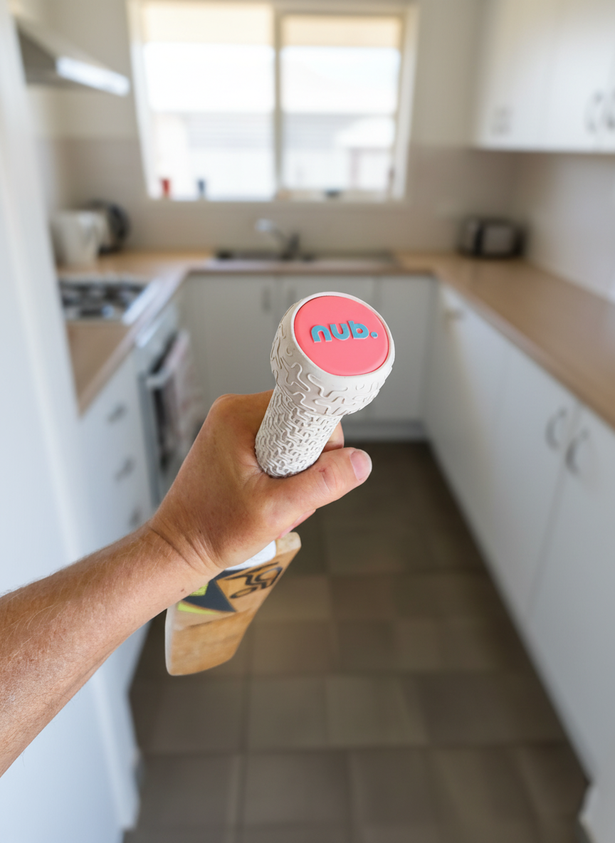 nub is a specialised cricket bat handle-end attachment engineered to enhance handling, control, and comfort. Crafted from high-performance silicone rubber, it fits a wide range of bat sizes, including youth, harrow, and adult.